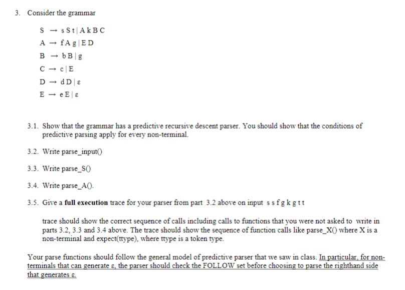 Solved 3 Consider The Grammar S St Akbc A Aged Bbs C Chegg Com